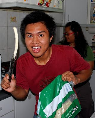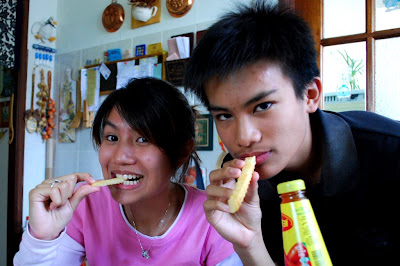 ... Qays's mom ^_^ really nice. She tought me some stuff about cooking while i was cooking the fries. Yes i cooked while the girls relax and waited for the food -_-" dunia dah teblik dah! haha. I wanted to cook Fettucini Alfredo (Fettucini pasata cooked with cheese) but then i was too lazy to buy all the ingridients.