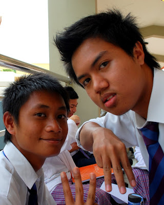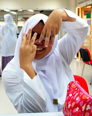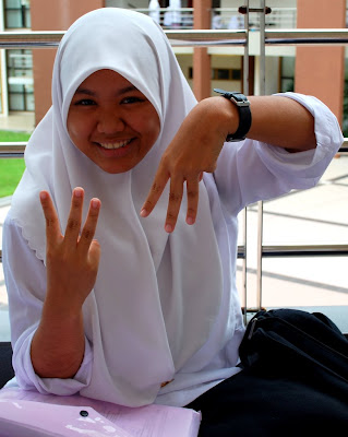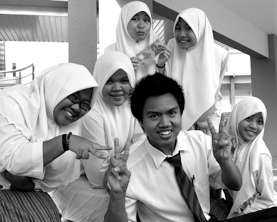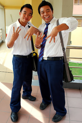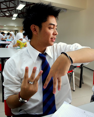 I achieved nothing educationally, but photographically i did ^_^ haha thankfully i brought my handy camera to school otherwise i'd be bored to death.. Well, firstly i had assembly and yeah the usual, anthem, doa, a little ceramah and sportcheck (which result to me having to buy a badge). Then excited sudah ku kan masuk EAS cuz i was really wondering what my results for EAS were since i was far away from complete, i just hope i pass. Anyways EAS got canceled because Mr.Brian was absent, so yeah we all went to the library. I finally thought of an Idea of a new background thingy i wanted to make for my new blog (WafiyM.blogspot.com soon to come to an internet near u!) So i spent my whole canceled EAS and P.S. (which was the next period), and my canceled Economics (which was after that) searching for people i know and forcing them to do the W-M sign ^_^ (btw the W-M sign stands for WafiyM -__-)