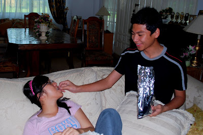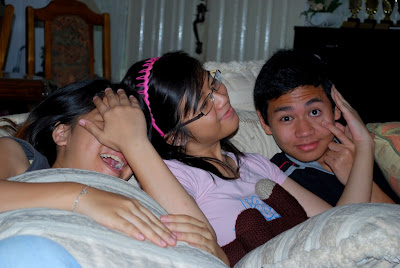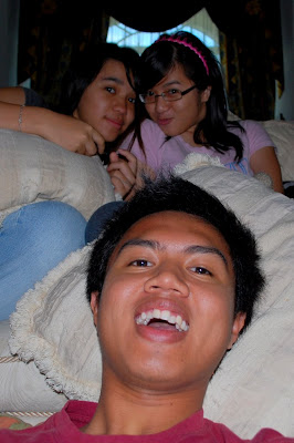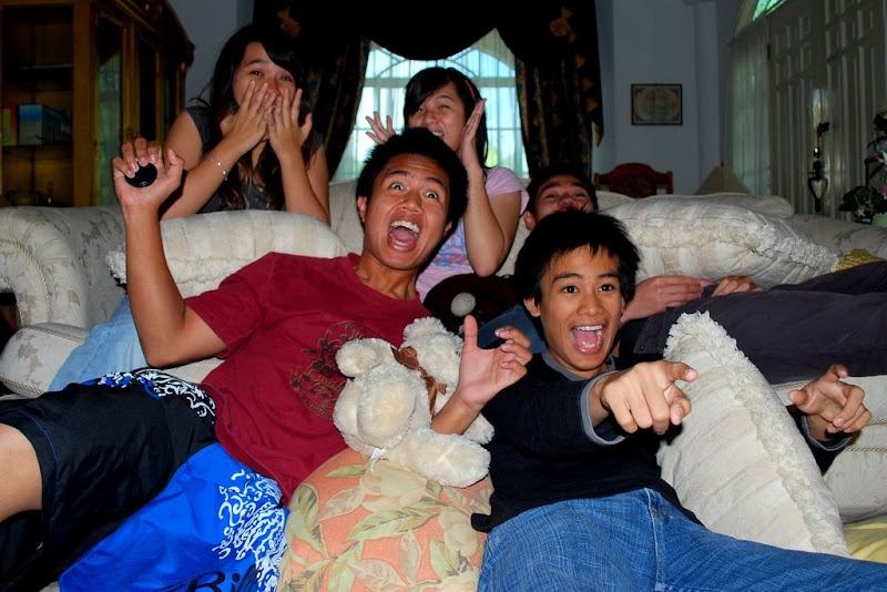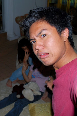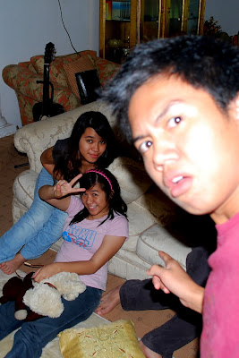 Tipah, Farhan, Ayun and Qays came over to watch a horror movie. Org meliat horror movie malam2 ah ani ptg bah boring. Haha well many couldnt come but they still majal want to hang out, nda lagi dpt sabar tunggu cuti skulah kan bejumpa bah. Anyways Tipah, Farhan and Ayun arrived first as they followed the same car and they brought the 3 in one DVD of Pocong (Agen qays dont laugh!)