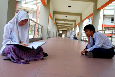 Haha i took this picture because i couldn't see the board -_-" haha our seats got changed. I used to sit one more row to the front but on the left side. I miss that seat and that group =( ani payah ku kan kacau si Twelve (Faten) di dapan xp haha