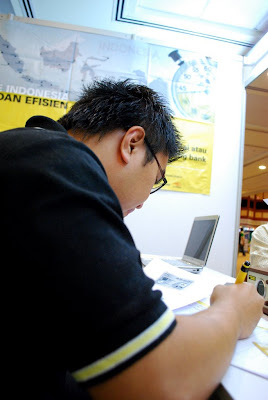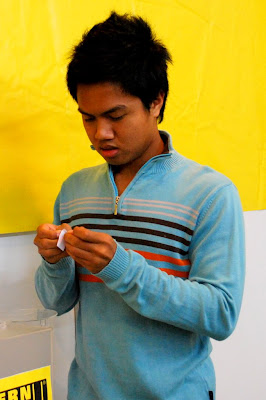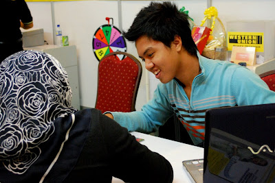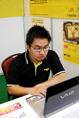 My brother at work. Haha barely, there was like nobody even passing by or bother looking at his booth haha.