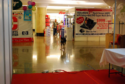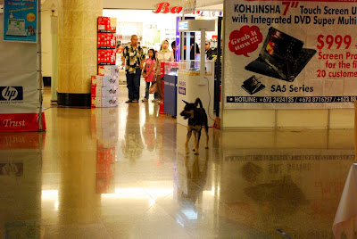 Yes i was kidding -_-" hahaha. I was just walking around about to go the escalator when i saw this dog, i stopped immidiately and had to take pictures. Wish i took more pictures but only got a few since i was in a hurry to buy EASI card. I guess he didnt read the sign -_-" Haha there was a guy who was walking beside the escalator just like normal normal lah walking ni macho udah haha. Then he looked to the right, haha with the most *OMG!!* face, he jumped faaaaar back haha hilarious. After i bought my EASI card the dog was gone, security kicked it out, dunno how as he couldnt touch the dog either. Haha kesian bah kuyuk kan lepak jua di mall haha.