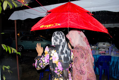 Just as people were about to go home it started to rain very heavily so we pulled everyone inside and had to send each person with a payung.
