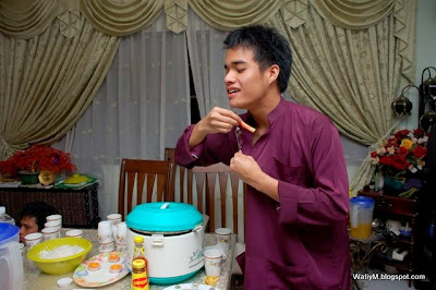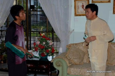 Put the weapon own Zri! Sabar, puasa. Sesungguhnya kmu sedang berpuasa. Haha i have no clue why he was holding a broom stick.