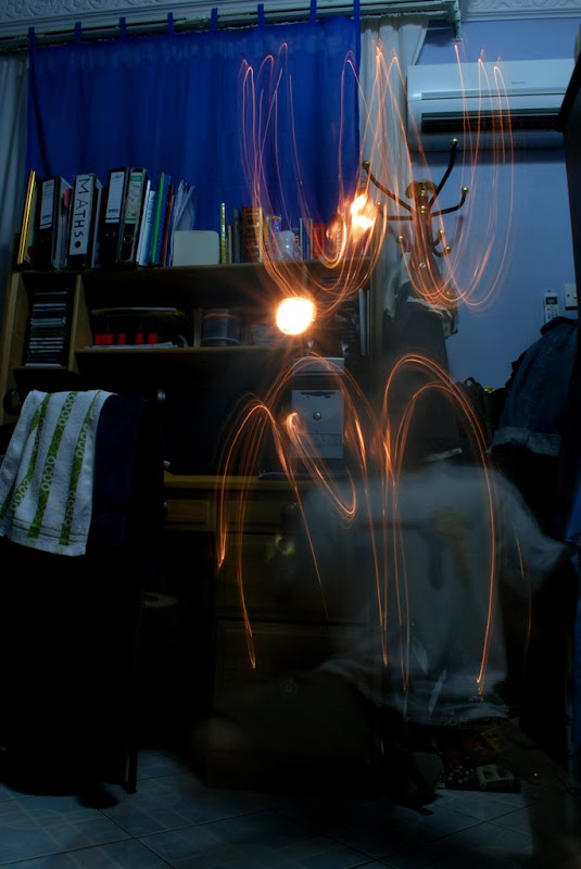 Not satisfied, i closed my lights and did one last one =D haha yeah its not that nice but i tried. Try checking Zyemah's blog, she did this really nice floating blue lights thingy, its like a one of those fantasy movies thingy wher u go into the lights and end up in another dimension or something. Haha i have a wide imagination.