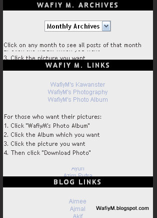 So i've been having problems with my blog as u can see from the pictures below. I tried to take out the poll and the bitty browser and it ended up looking like that. Very impatiently, i tried to do everything and tried to do it really fast but to no avail (haha never used this word before, lurus kah ku pakai atu?)