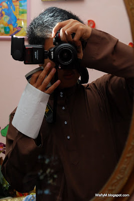 and thats me with my cool white sarung tangan. Haha its my Card Bouncer for my flash, dont i look cool? xp