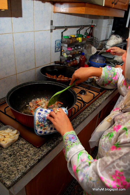 My mom told this group of people from Pulau Bahar to come to our house later tht night and decided to cook last minute. AAA laju laju laju masak! Haha for ur info this is the largest group tht come every year to our house. Haha its fun see-ing my mind all worried about the food and everything when they come hehe.