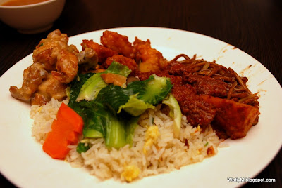 Buttermilk chicken, sweet and sour fish fillet, Baby kailan, Rendang, Chinese fried rice and Mee