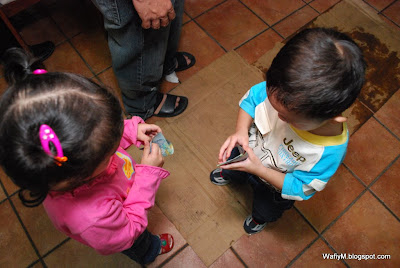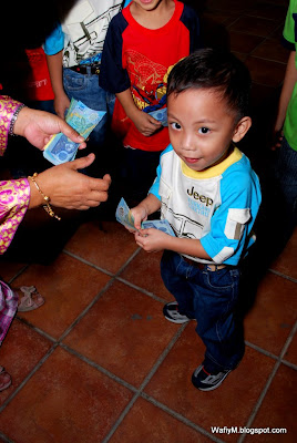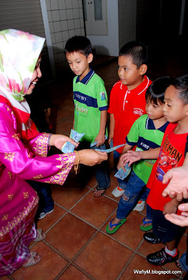 Everyone wanted to volunteer and pay for the sungkai and so we ended up having alot of left over money. So we decided to give it away to the kids. "Siapa mau usin bebaris!"